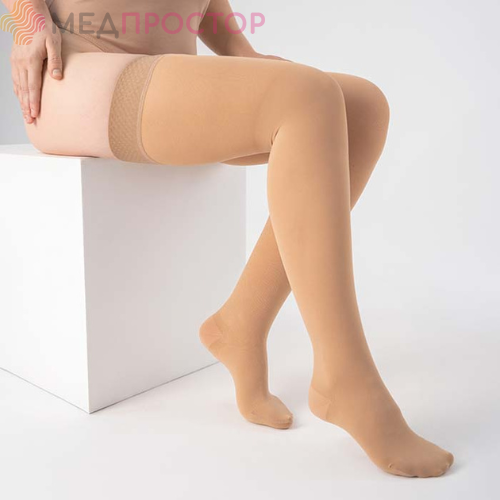 Чулки компрессионные с закрытым носком, класс компрессии 1, на широкое бедро, цвет бежевый, ТК.931 Evolution